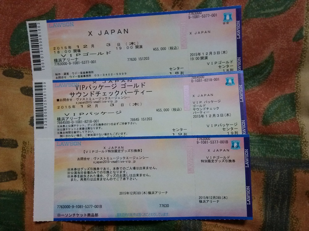 X JAPANのVIPパッケージのチケットだけ届きました。